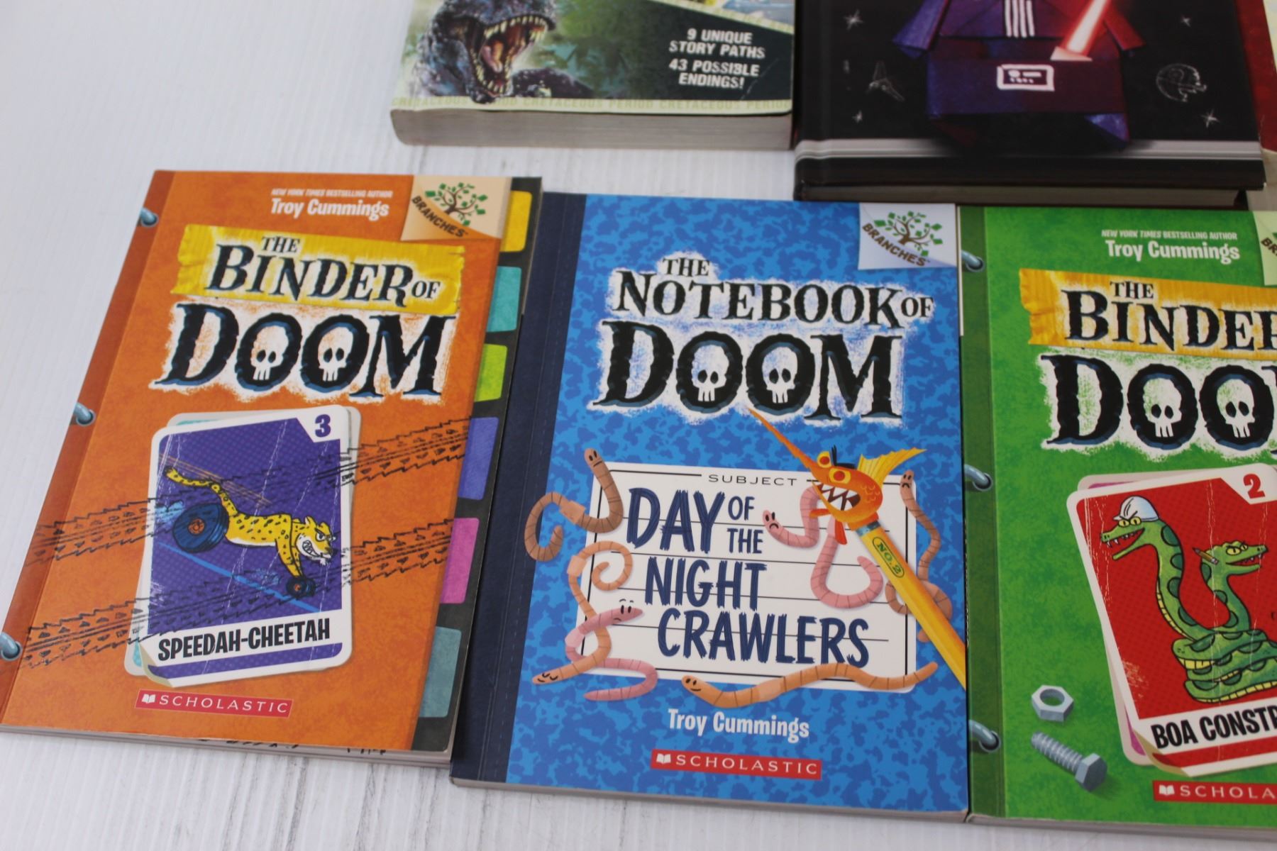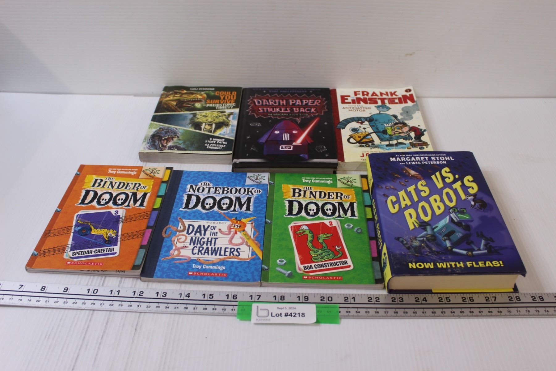 (7) Kids Books (Ages 8-12): Cats vs Robots, Binder of Doom Series, Darth Paper, Prehistoric - Could you Survive Edition, Misc.
