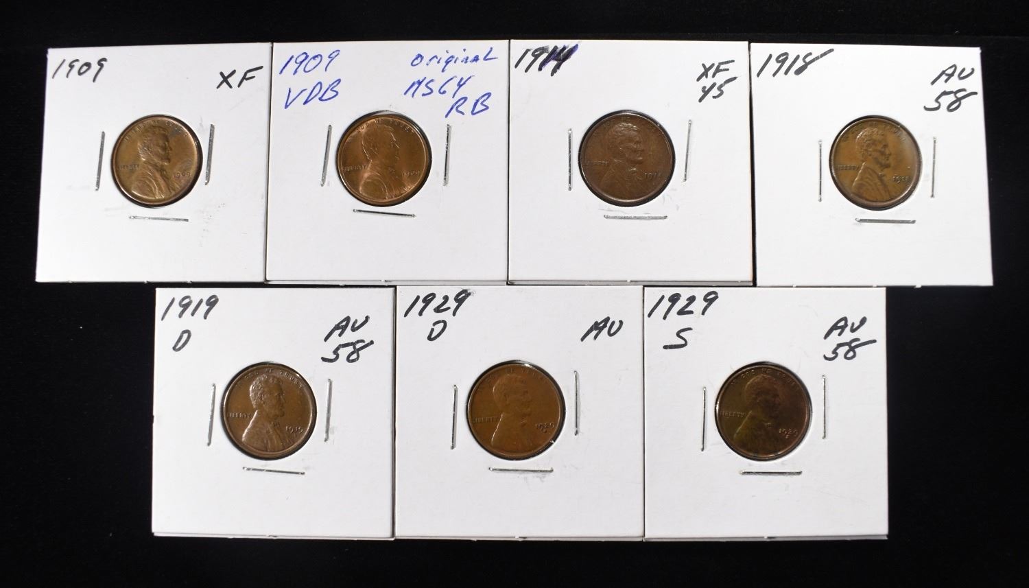 1909 XF, 1909 VDB CH/GEM BU, 1914 XF/AU, 1918 AU/BU, 1919-D AU/BU, 1929-D AU, & 1929-S AU/BU ESTIMATE $160 - $210.