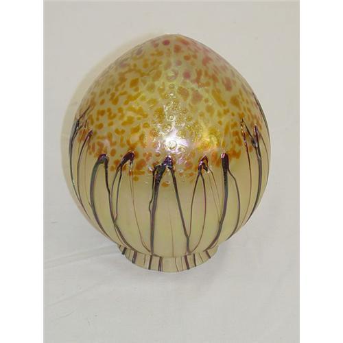 7" LOETZ TYPE ART GLASS SHADE - FLOWER BUD OR EGG SHAPED W/ APPLIED DECORATION (3 1/4" OPENING) - LOSSES TO APPLIED DECORATION, WEAR