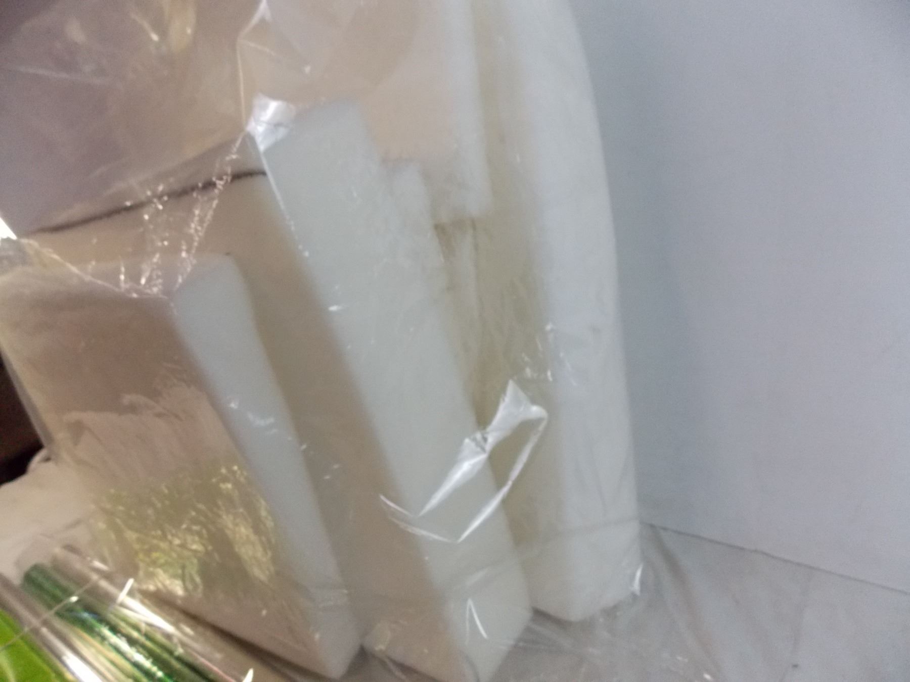 *(7) Large chunks of foam + rolls of gift wrap paper