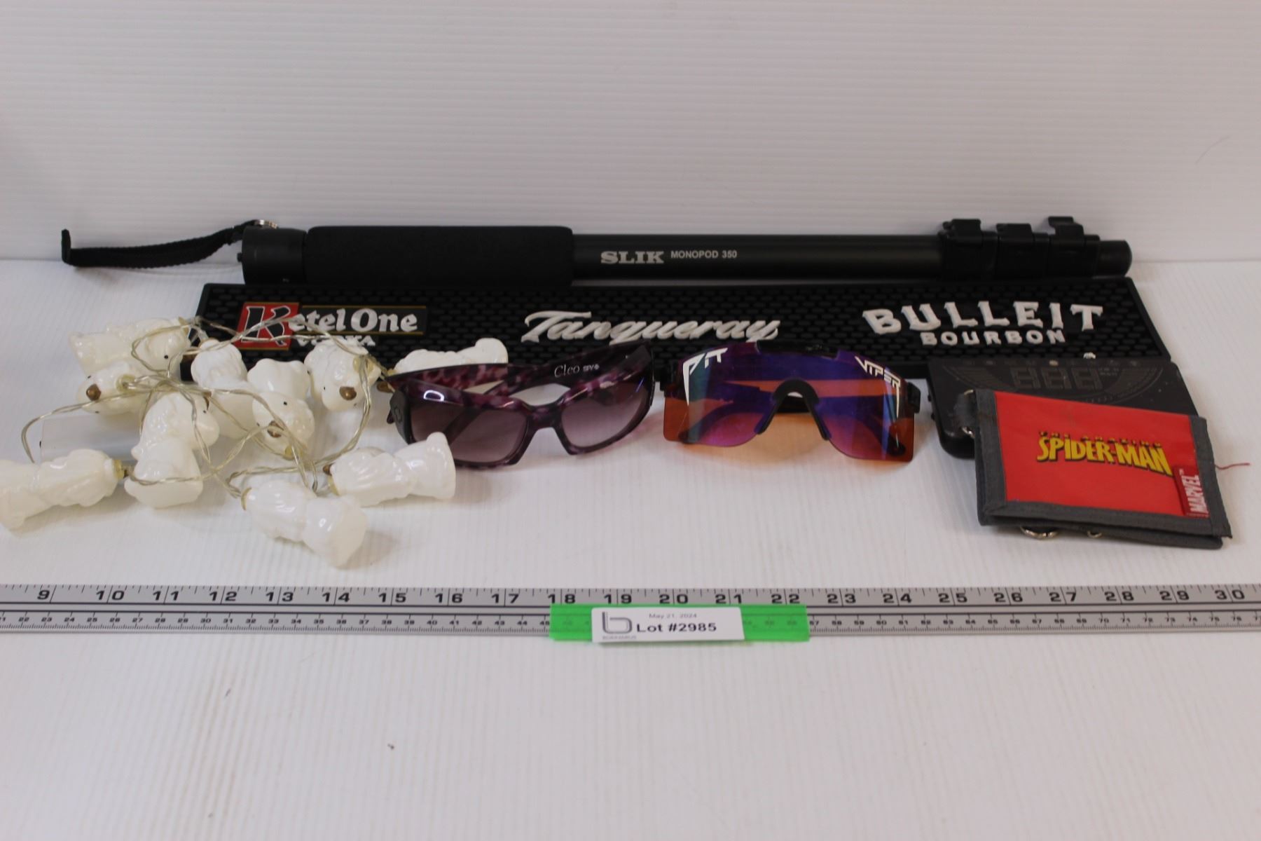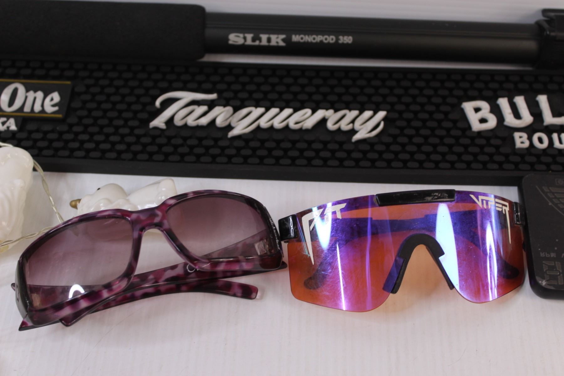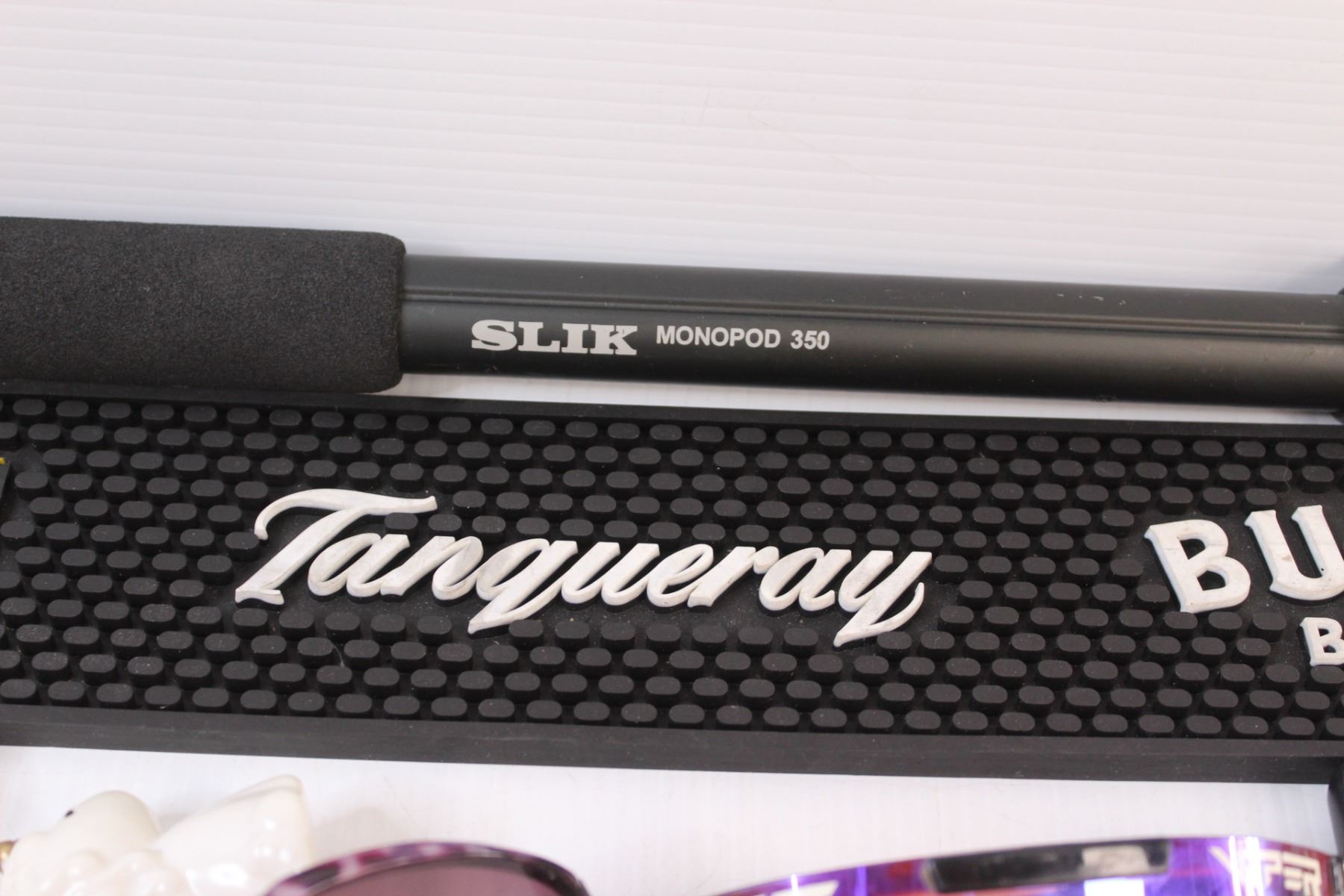 (7) Lot of Misc. Items: Rubber Bar Mat; Monopod; Sunglasses; Mini Lights; Wallet