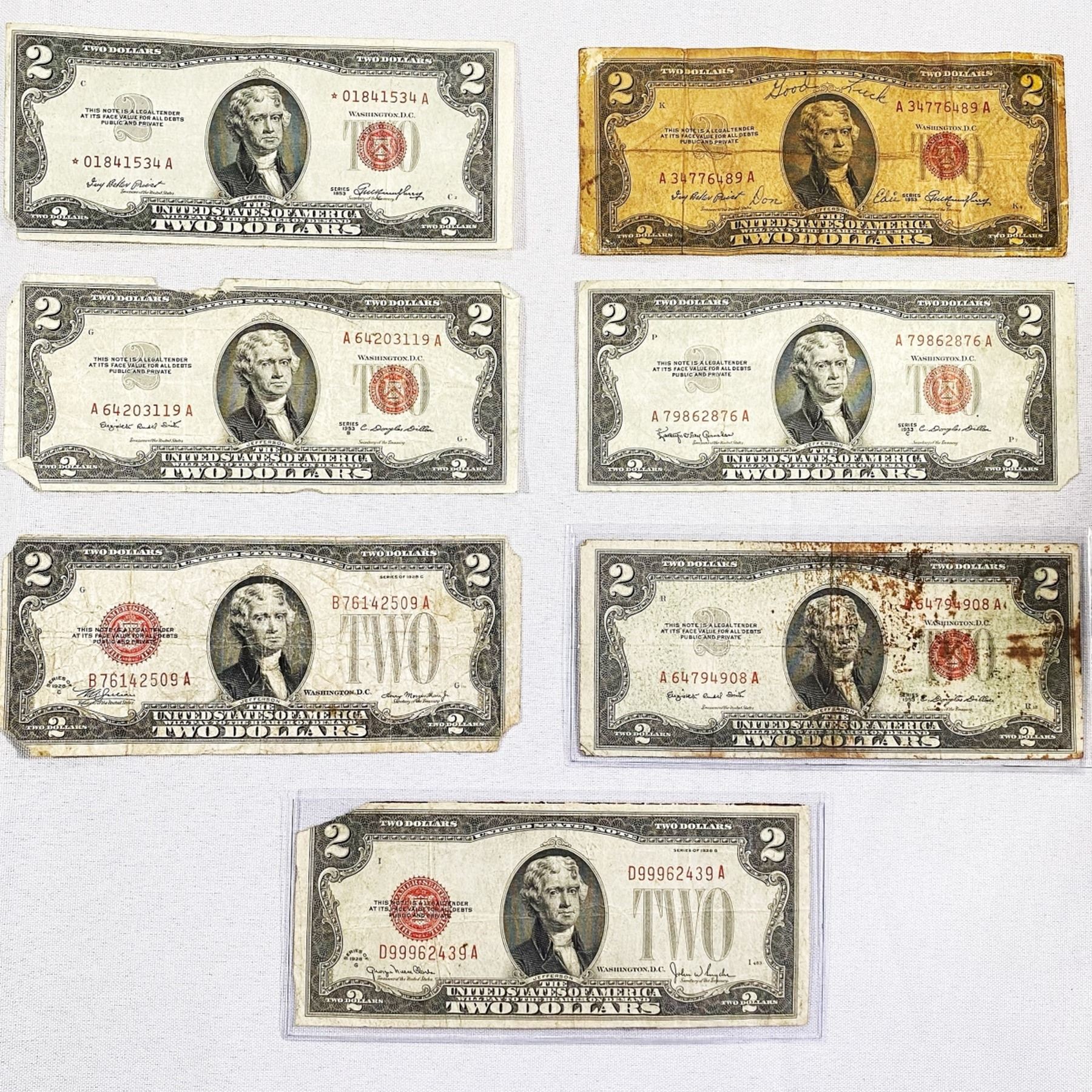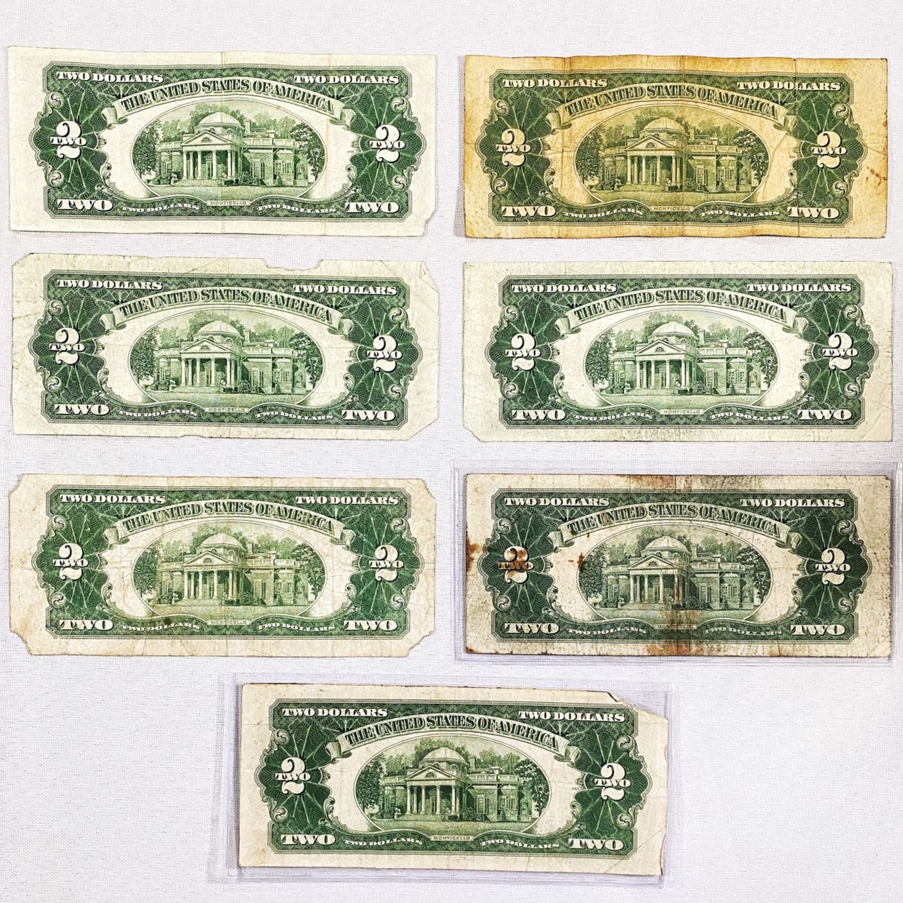 (7) "Lucky" $2 Red Seals -DMGD