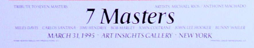 A special tribute to the following seven musicians: Carlos Santana, Miles Davis, Jimi Hendrix, Bob Marley, John Coltrane, John Lee Hooker and Bunny Wailer. 19.5x12 in. Artwork by Michael Rios and Anthony Machado. Domestic shipping-$20, Inter