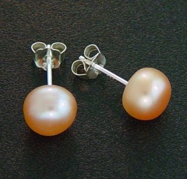 7 Mm Genuine Cultured Pink Pearl Stud Earrings - .925 Sterling Silver Posts
