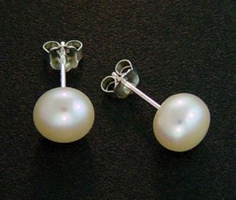 7 Mm Genuine Cultured White Pearl Stud Earrings - .925 Sterling Silver Posts