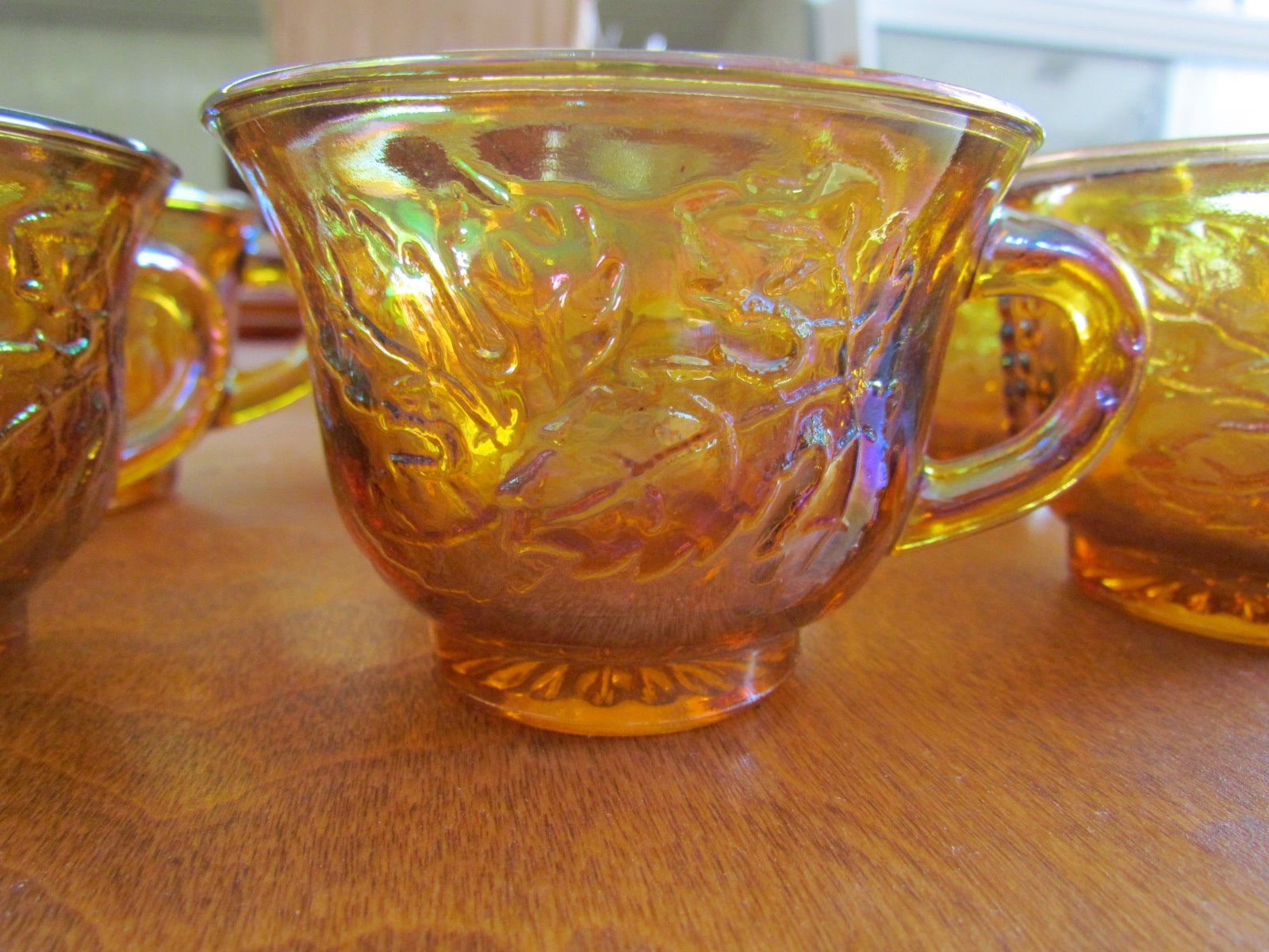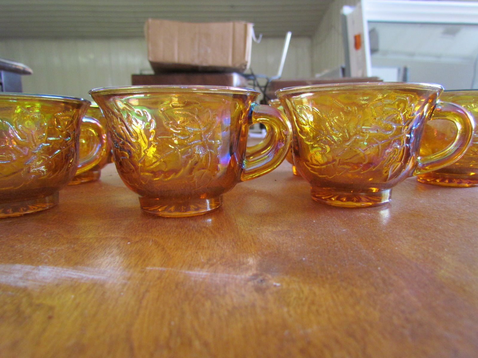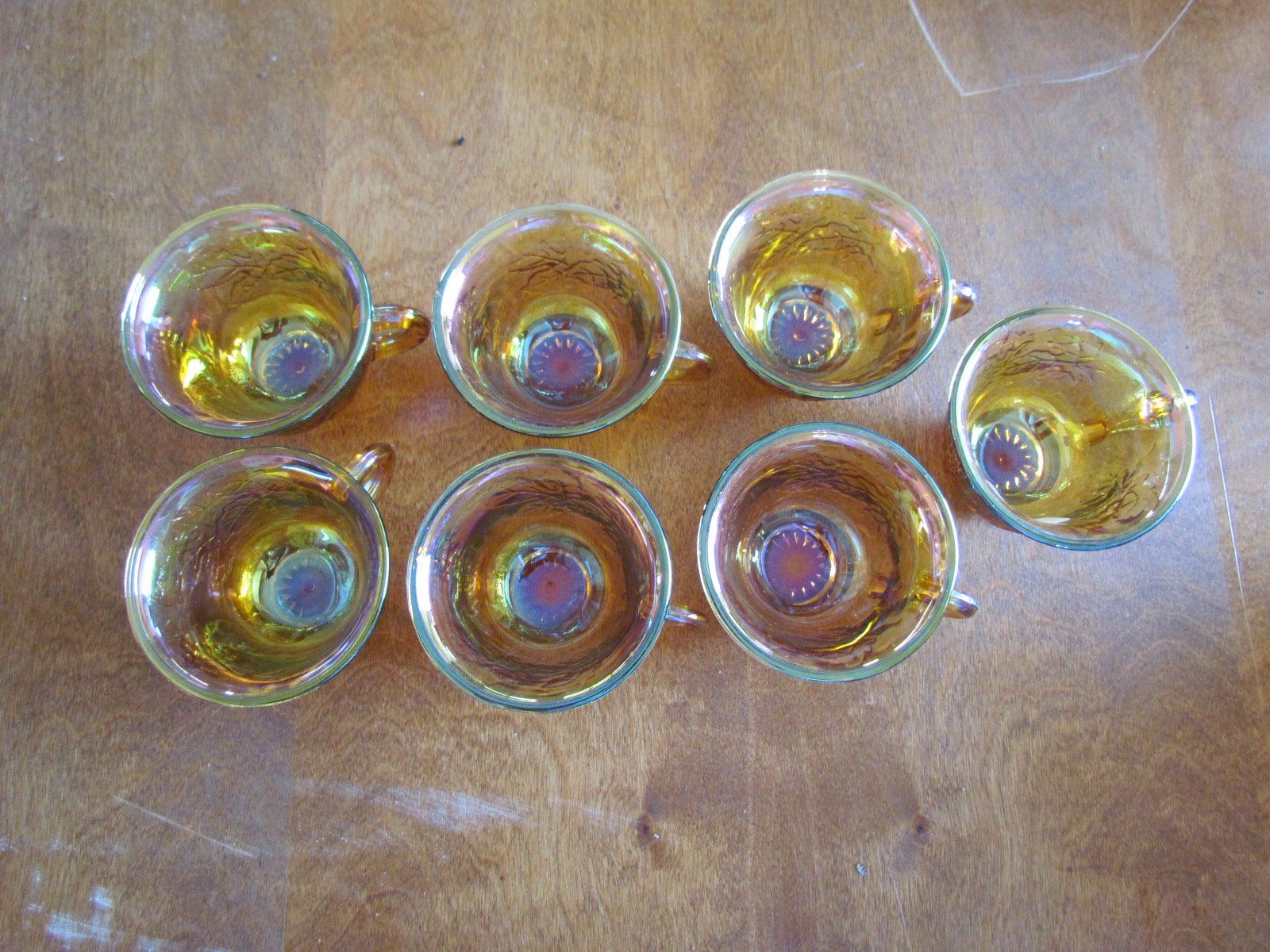 7 Mondern Carnival Glass Teacups