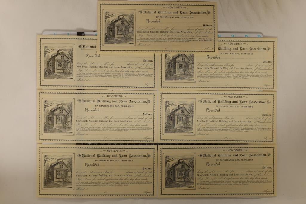 CUMBERLAND GAP TENNESSEE UNUSED CIRCA 1800'S LOAN PAYMENT RECIEPTS, CRISP UNC