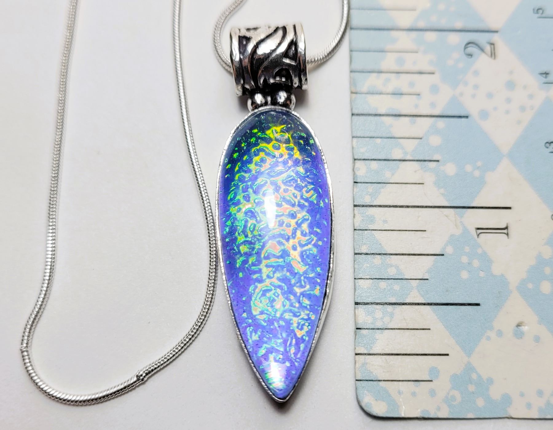 PENDANT IN SHADES OF BLUE/GREEN & PURPLE ON AN 18" SNAKE CHAIN. JEWELRY