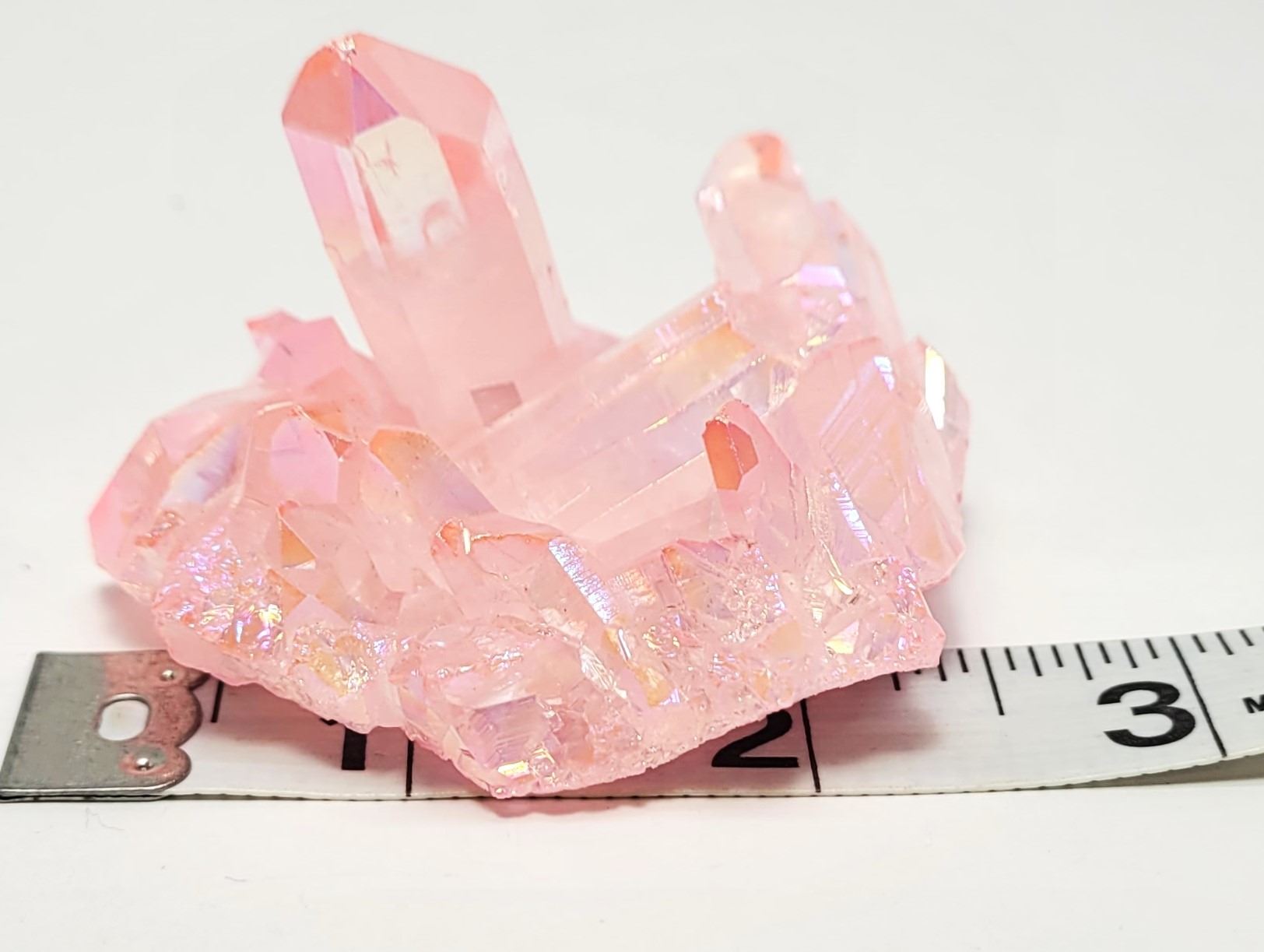 7) NATURAL PINK QUARTZ CLUSTER, WEIGHS 74.7