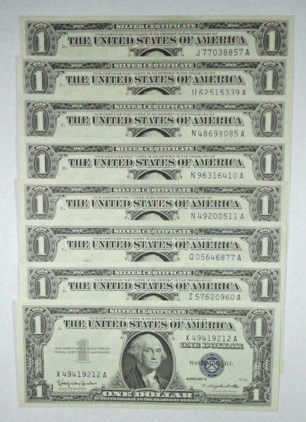 SILVER CERTIFICATES THE WAY THEY MIGHT HAVE LOOKED IF YOU GOT THEM FROM THE BANK IN 1957, EST. $30.00 TO $35.00