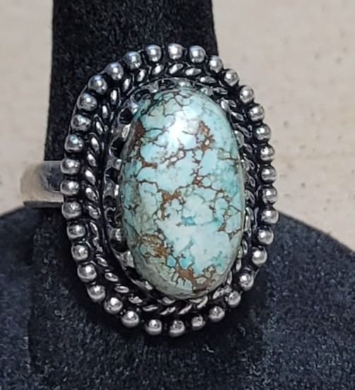 7) OVAL NATURAL LANDER TURQUOISE SIZE 6.5 RING,