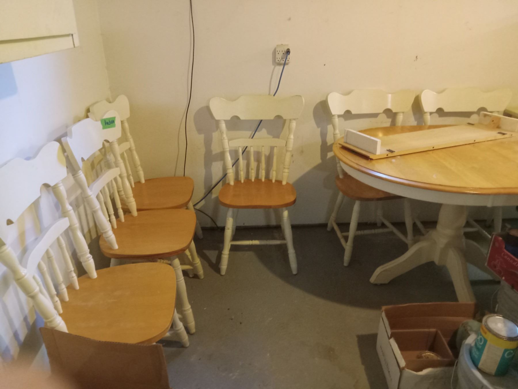 7-PC. - D.R. TABLE & CHAIRS - PINE & WHITE