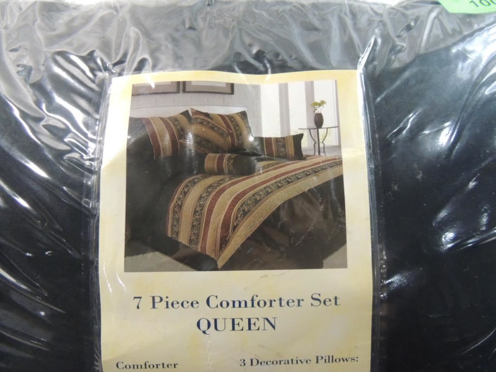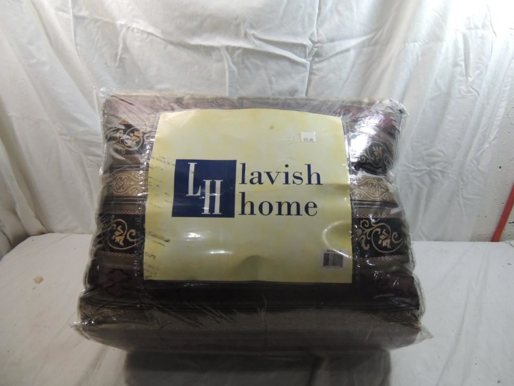 LAVISH HOME DARK ELEGANT TRADITIONAL COMFORTER SET, QUEEN SIZE COMFORTER, SHAMS, BED SKIRT, DECORATIVE PILLOWS AS SHOWN SEE PHOTO FOR MORE DETAILS.