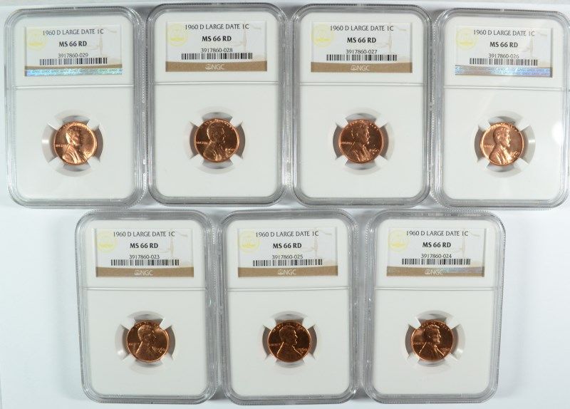 ( 7 ) PIECES 1960-D LARGE DATE LINCOLN CENTS, NGC MS-66 RED!!