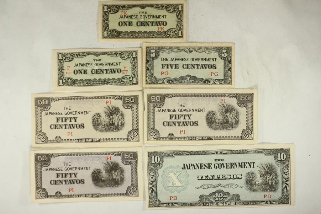 CURRENCY, 2-1 CENTAVO, 5 CENTAVO, 3-50 CENTAVOS AND A 10 PESOS