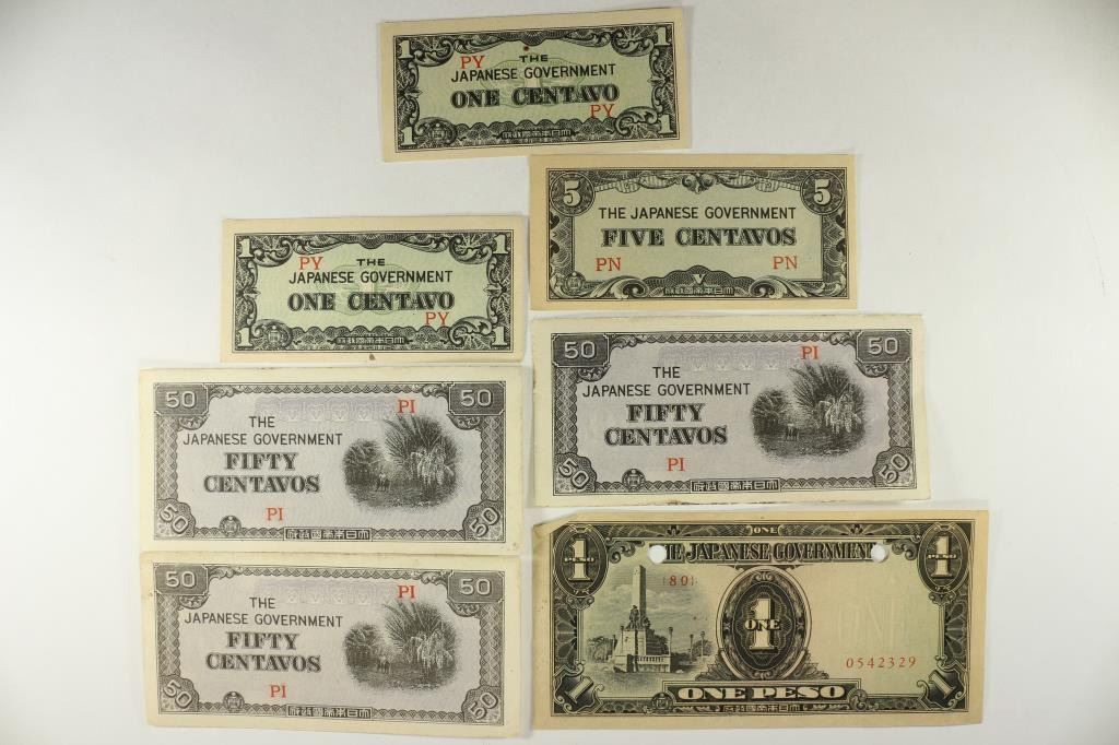 INVASION CURRENCY, 2-1 CENTAVO, 5-CENTAVO, 3-50 CENTAVO AND ONE PESO