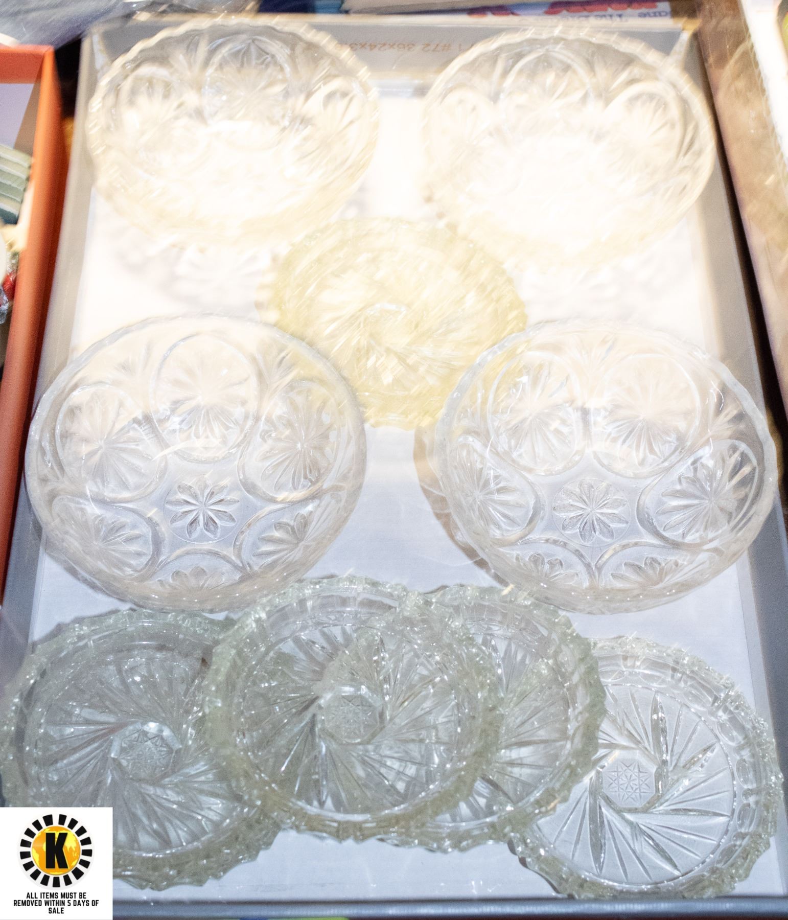 7 PINWHEEL COASTERS & 4 FANCY DISHES