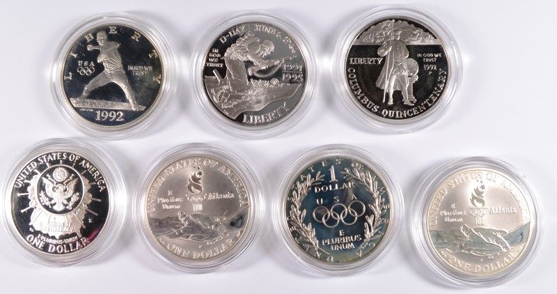 ( 2 ) 1995 OLYMPICS ( CYCLING ) 1995 WWII, 1992 COLUMBUS, 1991 MOUNT RUSHMORE, 1988 OLYMPICS AND 1992 OLYMPICS, ESTIMATE, $300.00 TO $350.00 Silvertowne is rated as a top auction company because of its expert and accurate grading of coins and curren