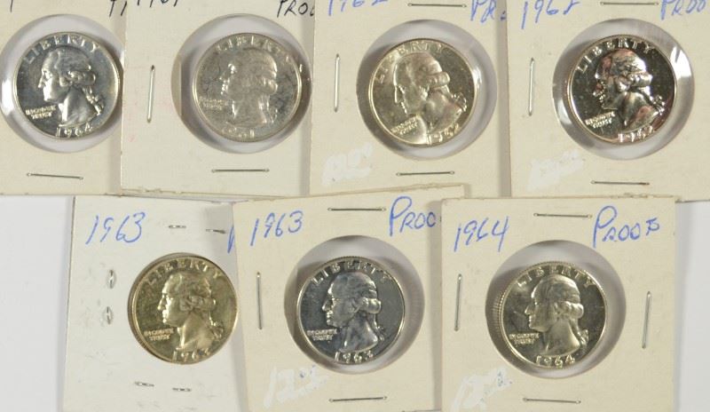 7 - PROOF WASHINGTON QUARTERS; 1961, 2-1962, 2-1963, 2-1964