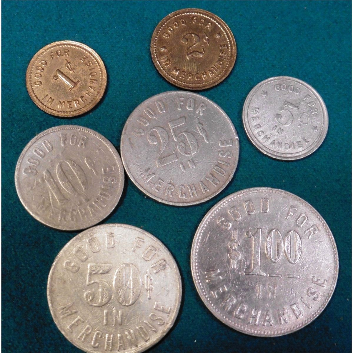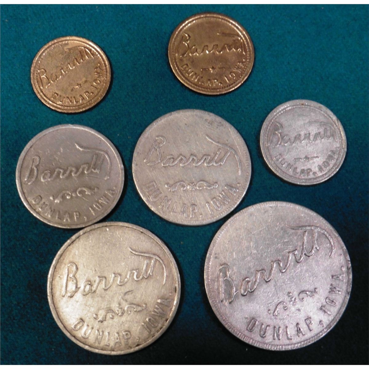 7 Pcs. Set “Barrrtt/Dunlap, Iowa.” Good for Tokens. 1c, 2c, 5c, 10c, 25c, 50c, & $1.00.