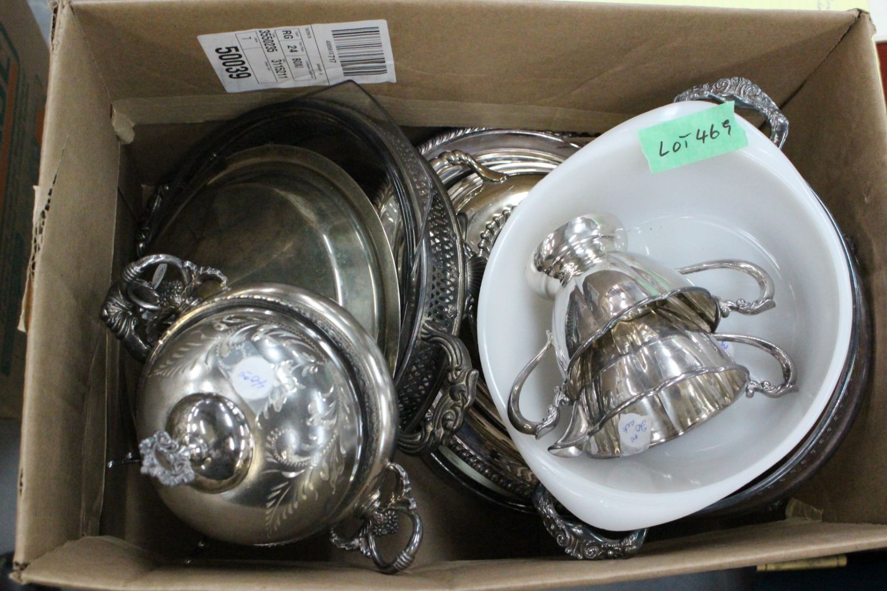 7 Pcs. of Silverplate with Glass Serving Dish Inserts