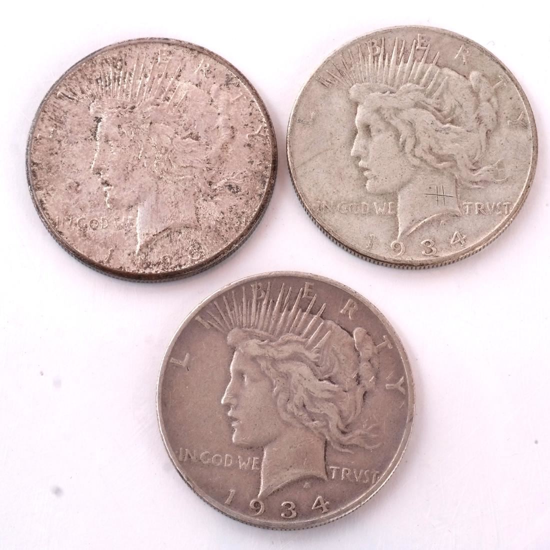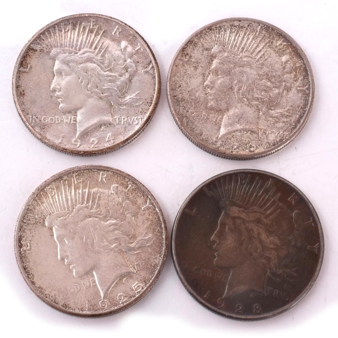 7 Peace Dollars: 1904-S, 1925-S, 1926-S, 1926-S, 1928-S, 1939-S, 1939-O.