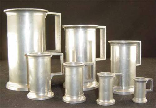7 Pewter Measurer Tankards, French