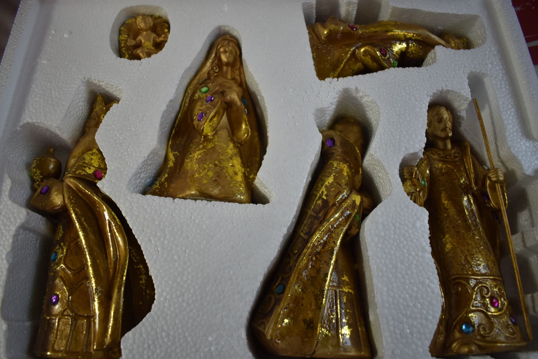 7 Piece Gold Leaf Nativity Set (Complete in Box)