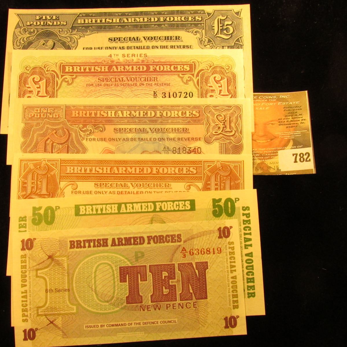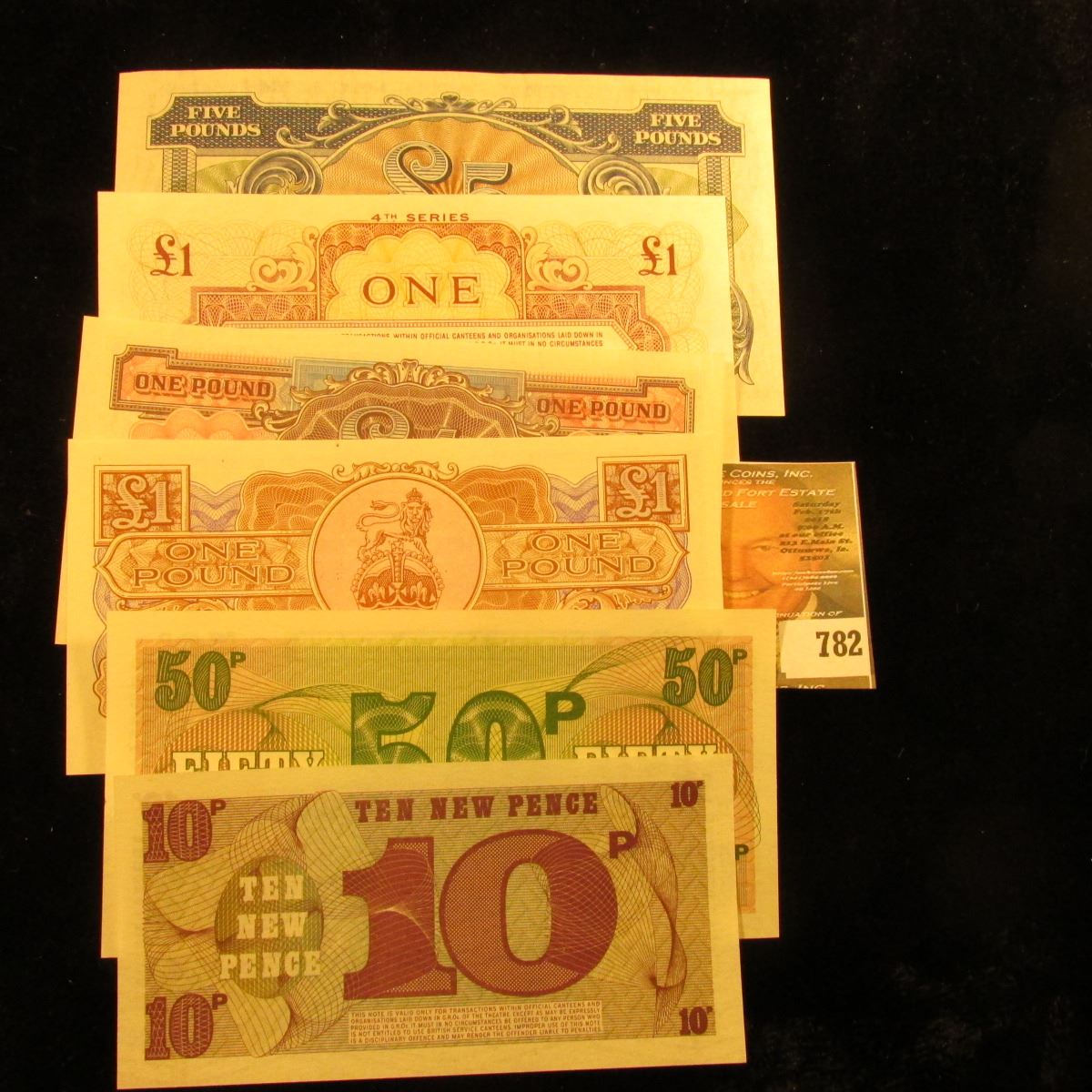 7 Piece Military Payment Certificates From Great Britain. They Are All Crisp Notes