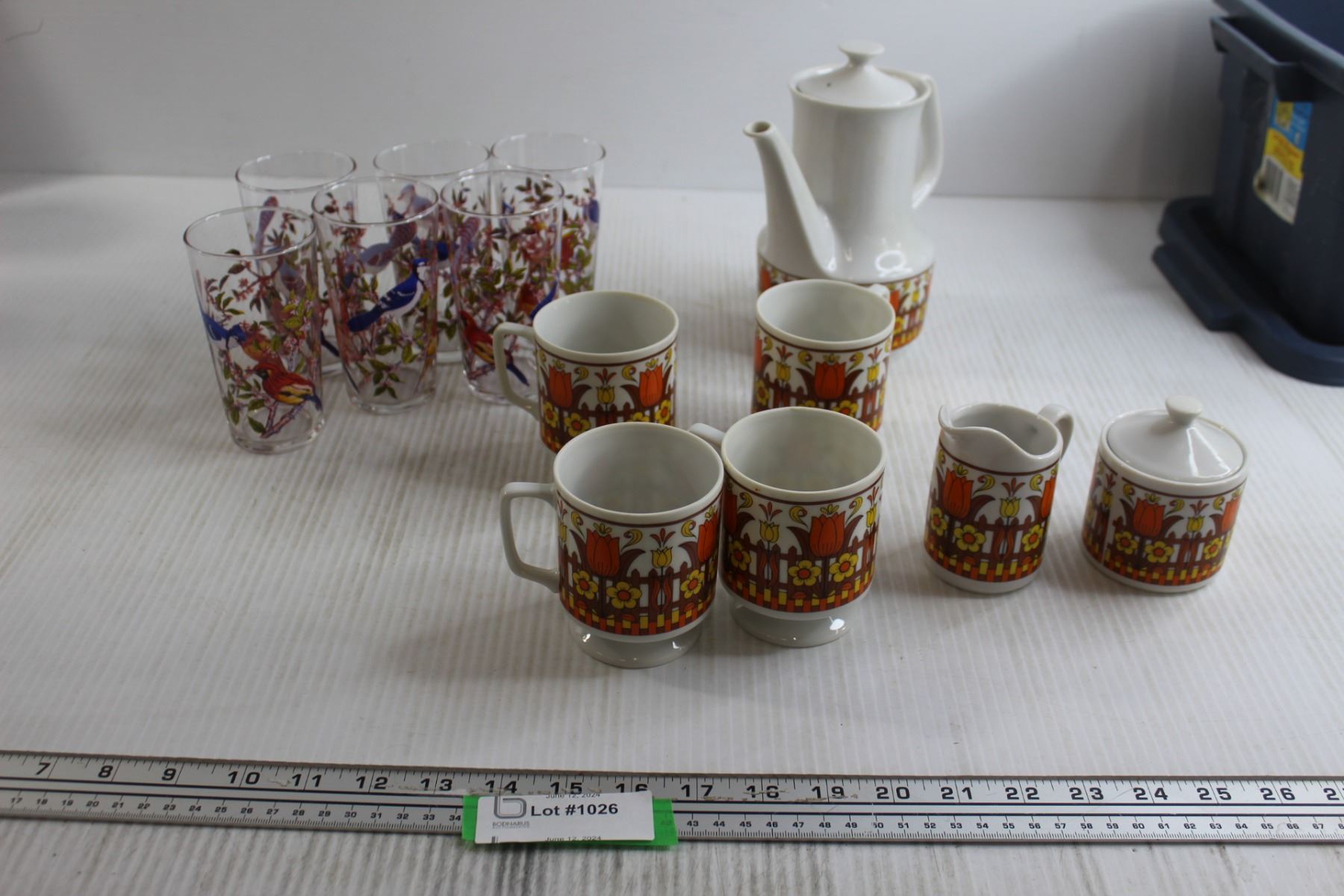 7-Piece Tea Set, (6) Bird Glasses