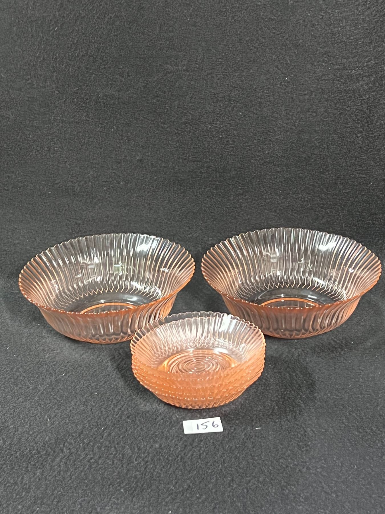7 Pink Depression Glass Bowls 2 Serving (8.5") & 5 Smaller bowls (5.75")