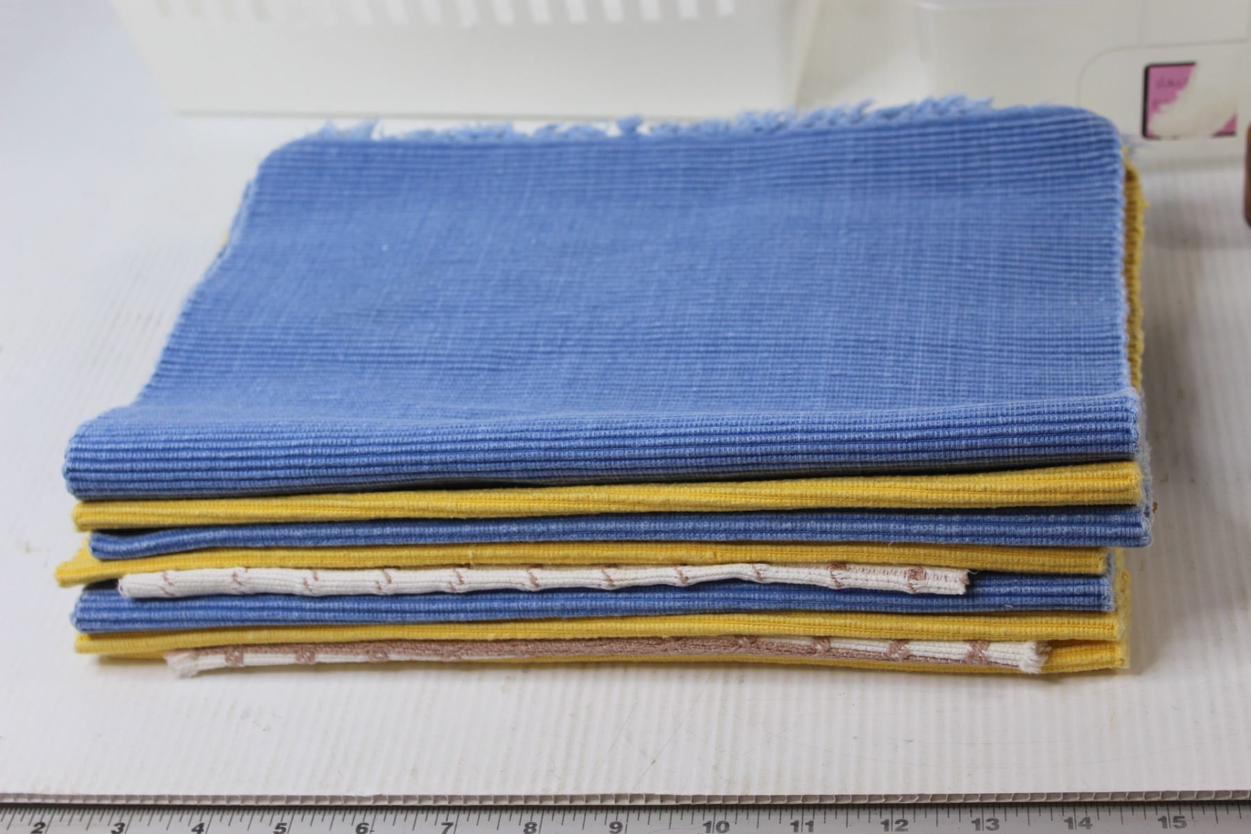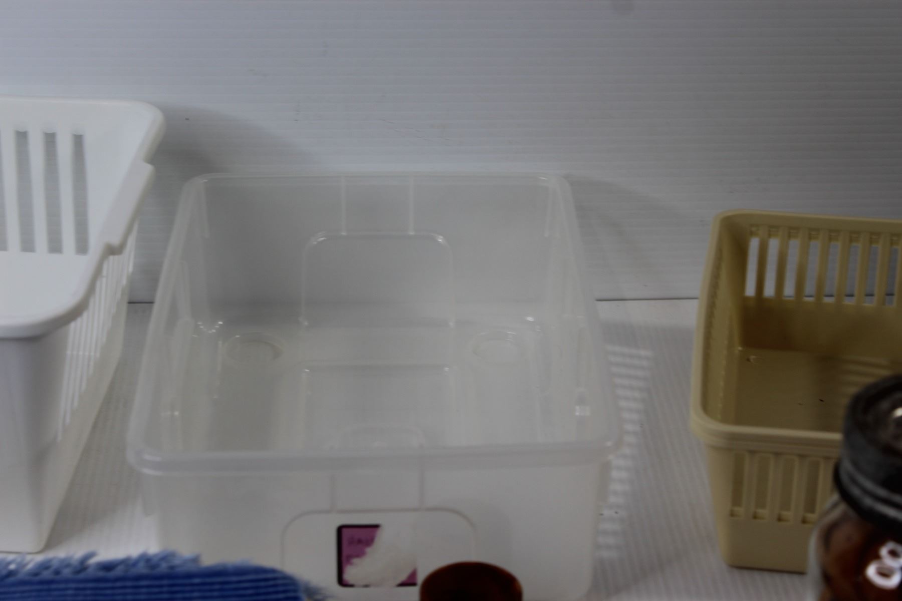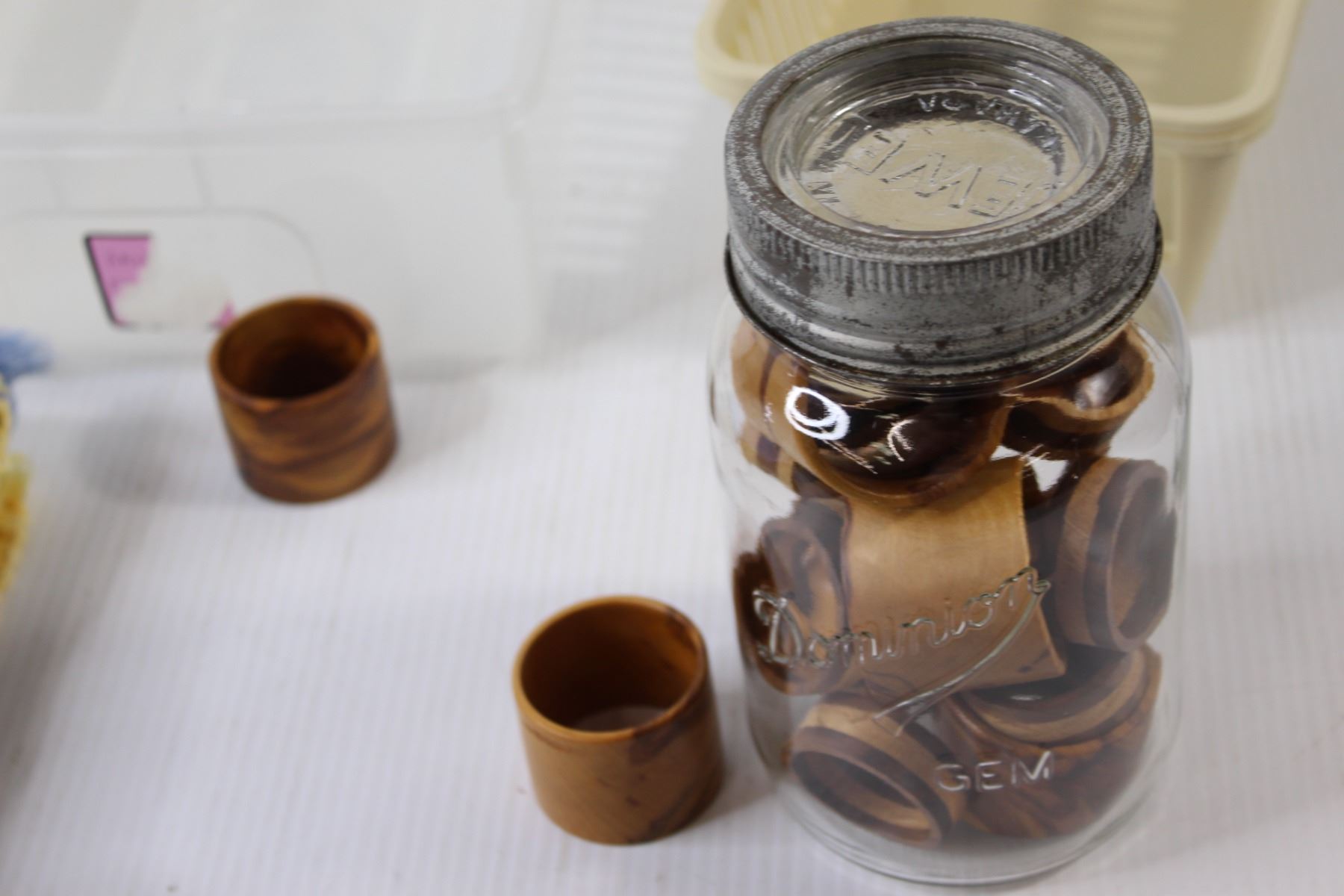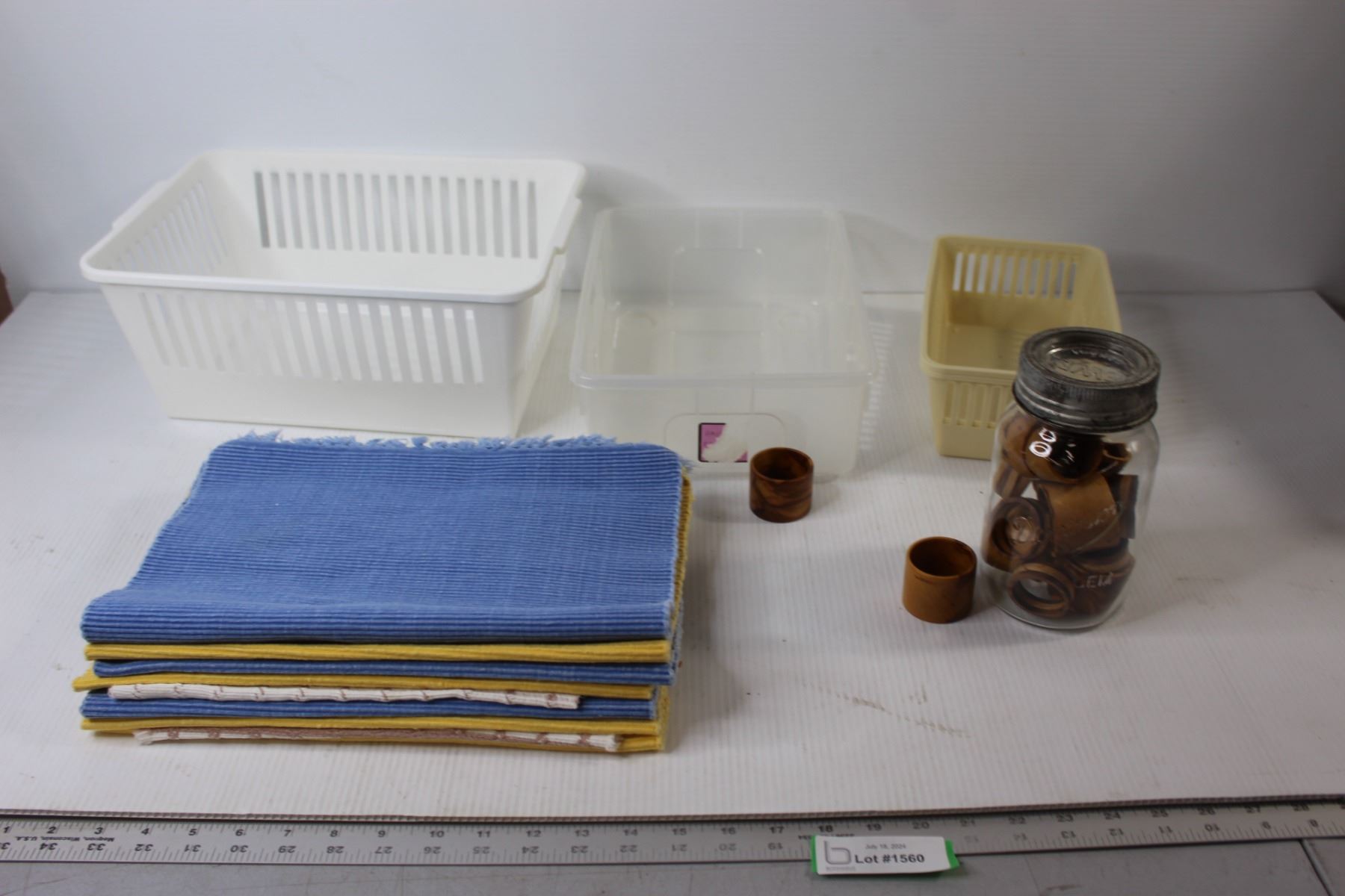 (7) Placemats, (2) Wash Cloths, (3) Containers, Jar of Wooden Circular Items