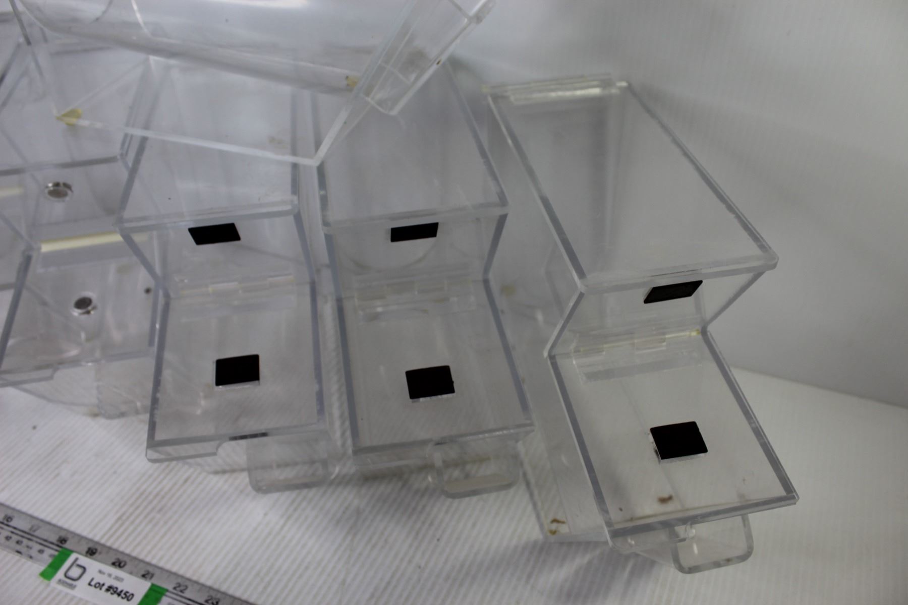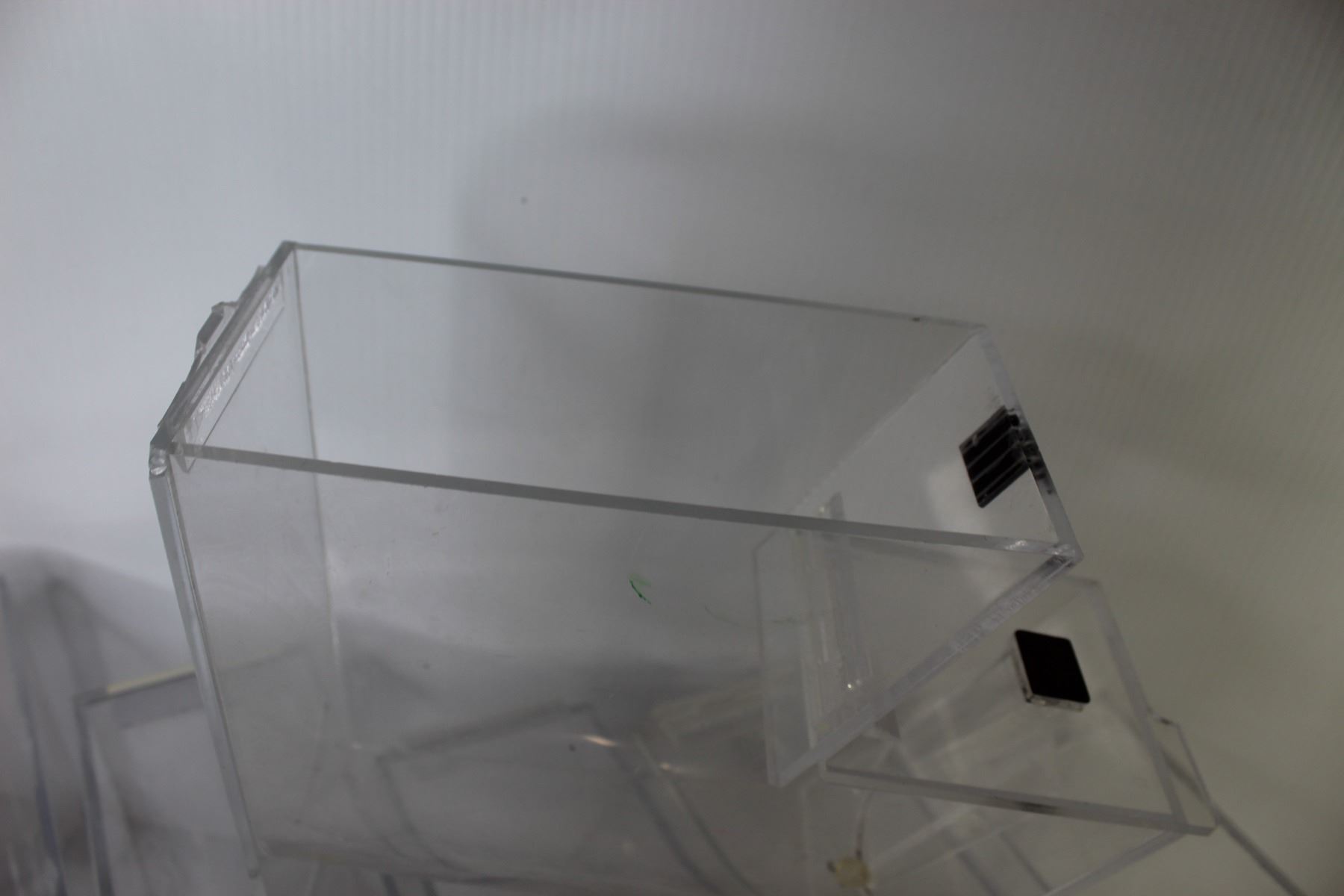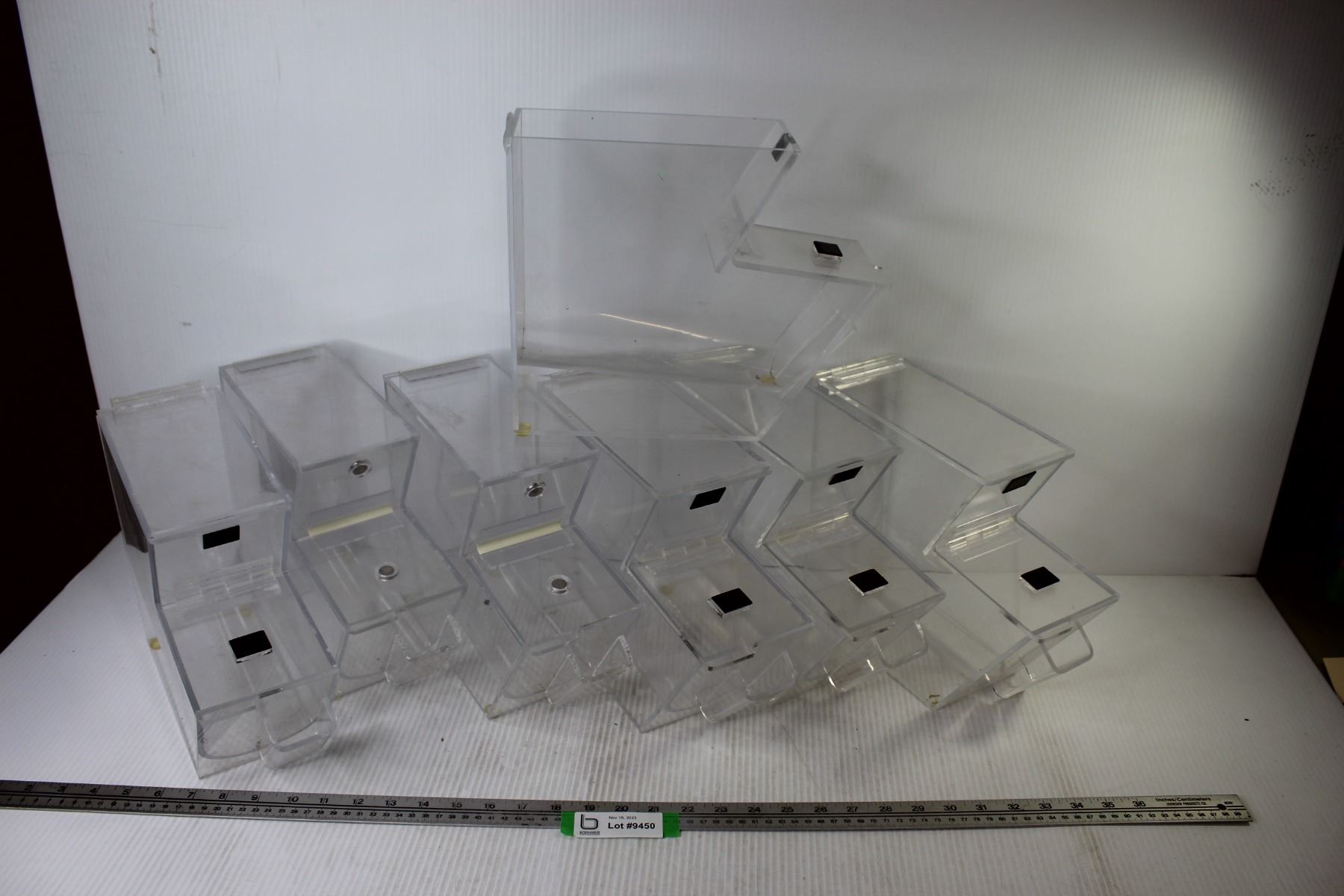(7) Plexi Glass Candy Holders (one lid missing - couple of small cracks & scratching)