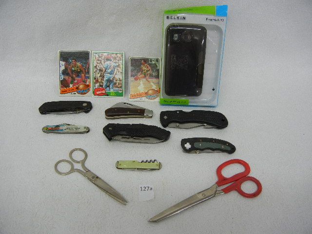 7 Pocket Knives, 2 Pairs of Scissors, and HTC Inspire Phone Case
