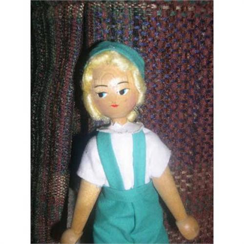 7" Polish Wooden Doll Short Set. Doll has moveable arms and legs. I'm assuming he is a boy as there are no eyelashes. He is all original. He has a knot mark in the wood in the middle of his face so when the light hits it just so, it looks darker. He comes from a smoke free environment. Buyer to pay $10 for shipping, handling, and insurance. Thanks for viewing.