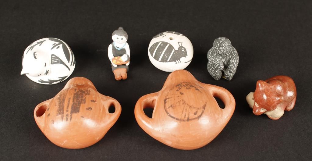 From various Pueblos. Pots, animals, and human figure. Various makers.