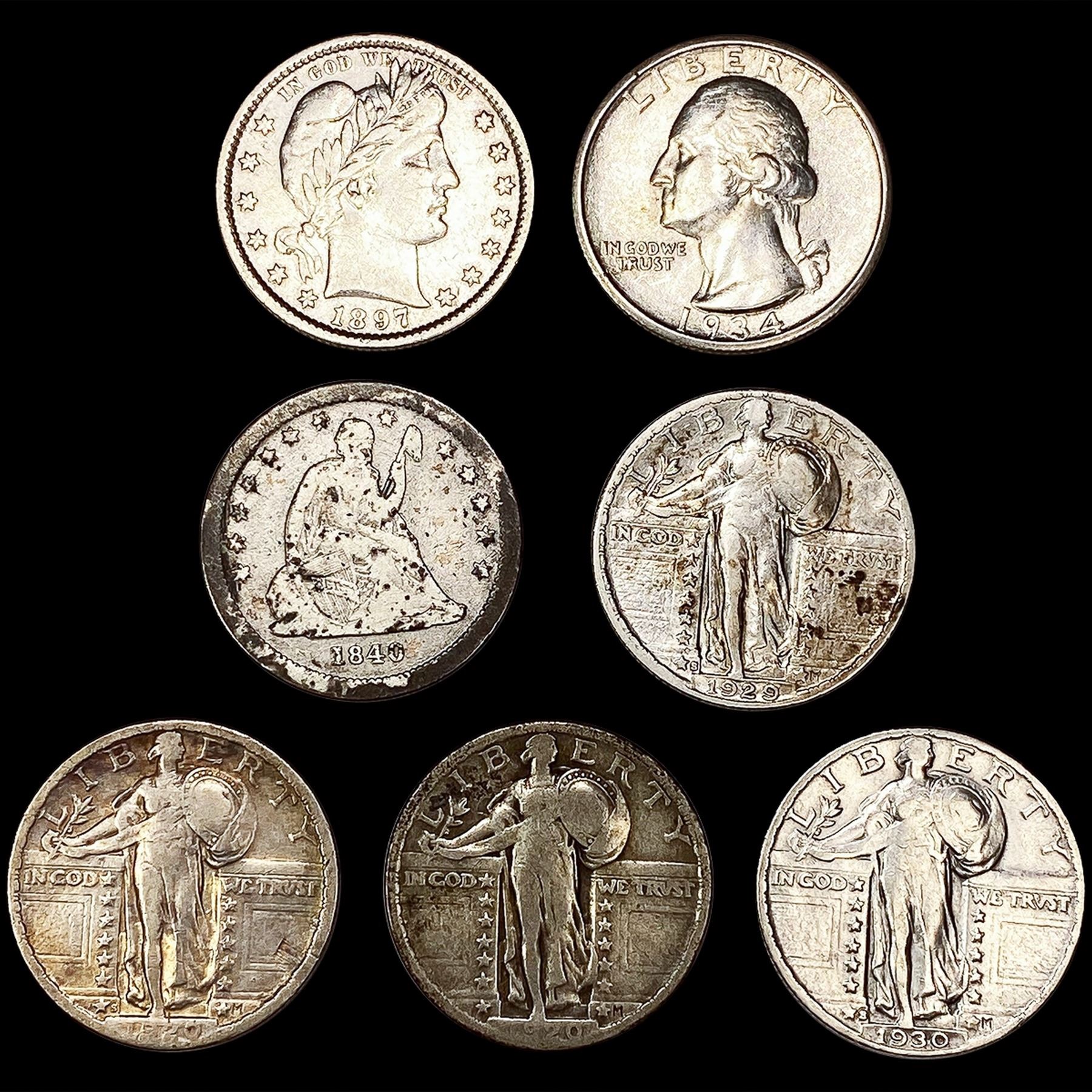 (7) Quarter Type Coins (1840-O, 1897, 1920, 1920-