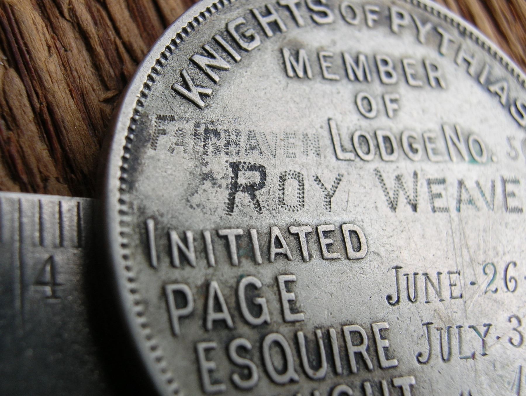 The reverse side has standard die struck words, that would be filled in later as membership increased and hand engraved, usually by local jewelers.