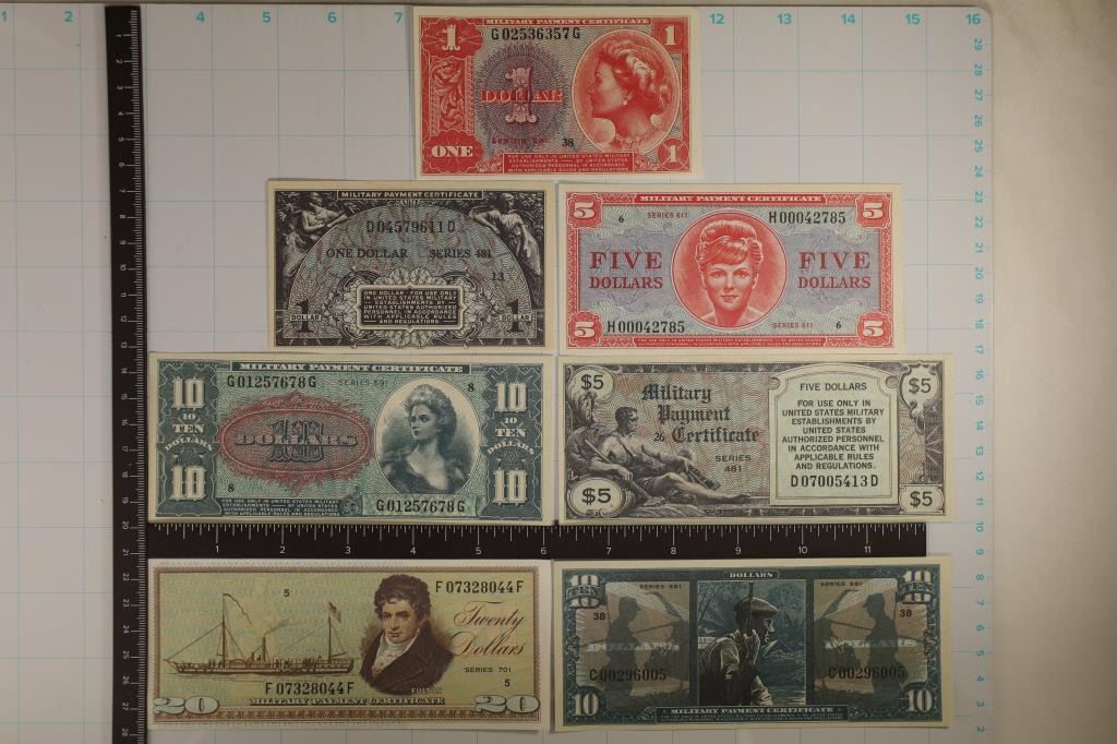 2- ONE DOLLAR, 2-FIVE DOLLAR, 2-TEN DOLLAR AND 1-TWENTY DOLLAR