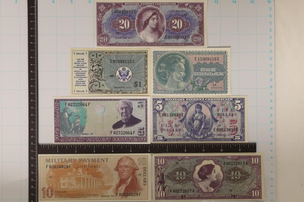 CRISP UNC: 2- 1 DOLLAR, 2-5 DOLLAR, 2-10 DOLLAR AND 1-20 DOLLAR