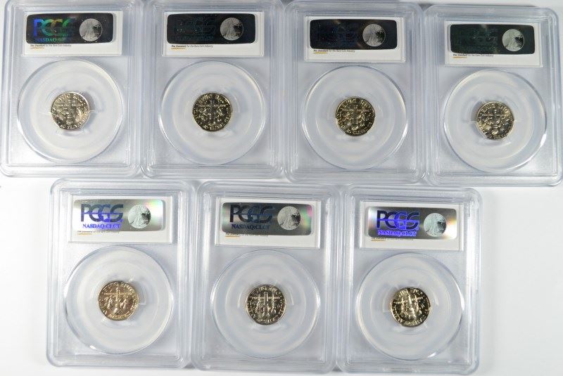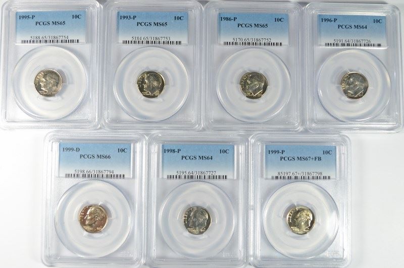 (7) ROOSEVELT DIMES PCGS GRADED (86, 93, 95, 96, 98, 99, 99-D)