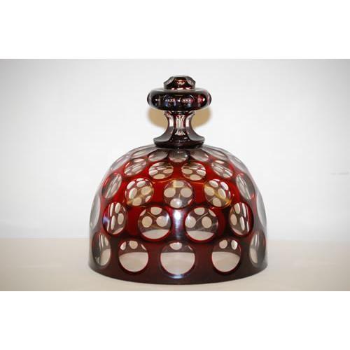 7" RUBY CUT OVERLAY CHEESE DOME - RUBY CUT TO CLEAR W/ COIN SPOT DESIGN, UNMARKED, POLISHED BOTTOM (7" T X 6 3/4" DIA.) - WEAR & SCRATCHES