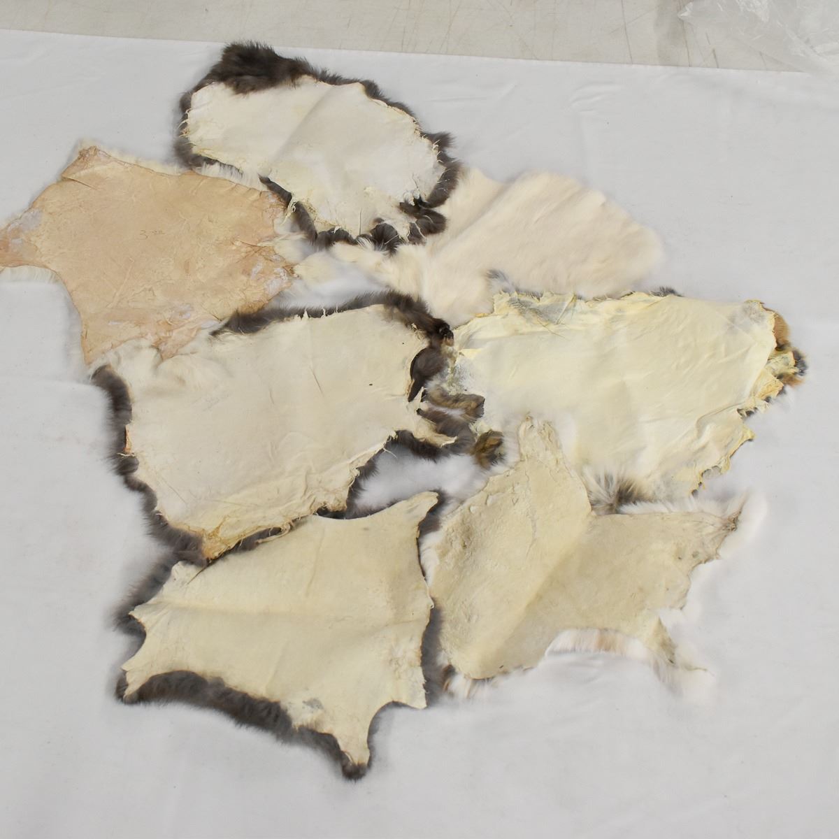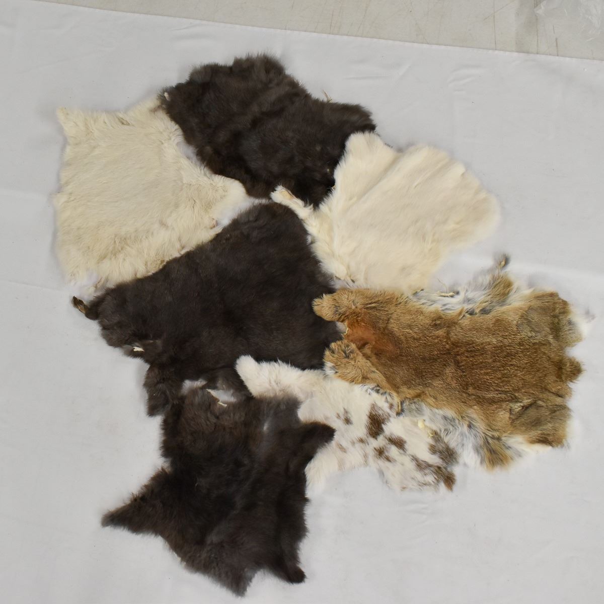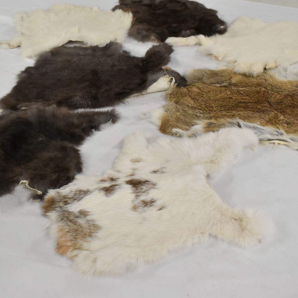 7 Rabbit Pelts, various sizes, largest measures 10'' x 6''