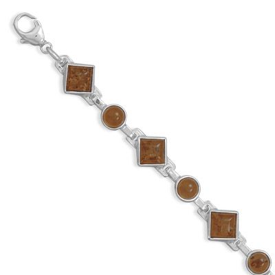 Bracelet features 6x6mm square and 5mm round Baltic amber links with a lobster clasp. .925 Sterling Silver