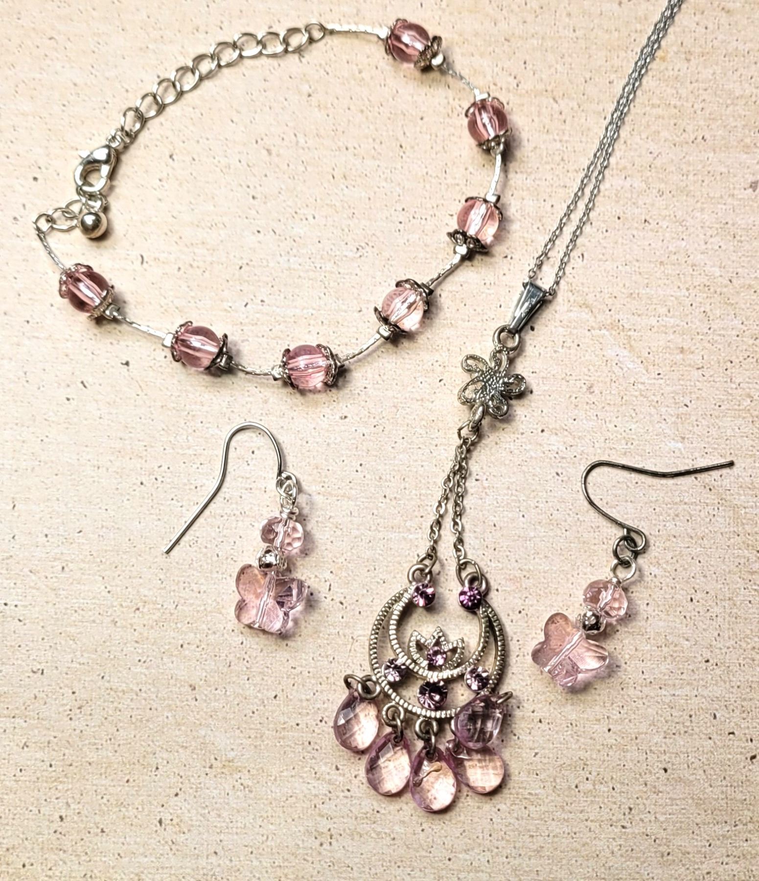 DROP EARRINGS AND PENDANT ON 18" CHAIN. JEWELERY
