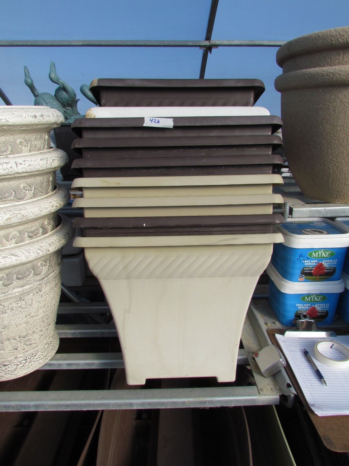 7 SQUARE PLASTIC POTS 16", 2 SQUARE PLASTIC POTS 14" (9 TIMES BID PRICE)