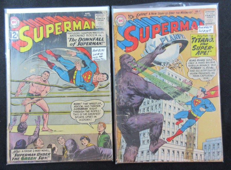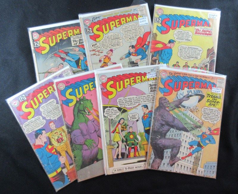 7 - SUPERMAN COMICS #138, 141, 142, 152, 153, 154, 155 - ALL SHOW WEAR / CREASES