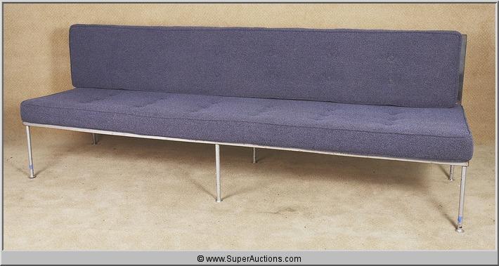 7' Steel Tufted Patio Bench Style Sofa with Blue & Red Cushion Set