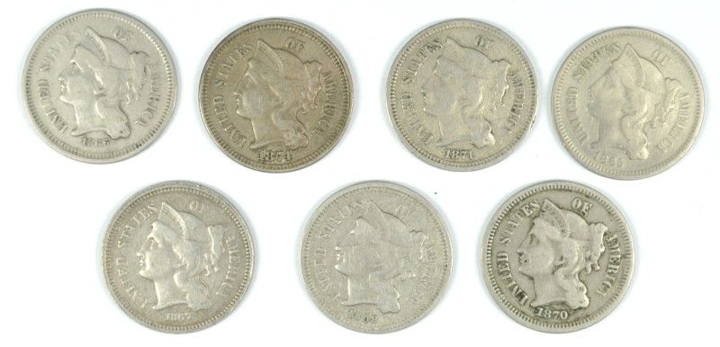 (7) THREE CENT NICKELS (65, 66, 67, 69, 70, 71, 74)