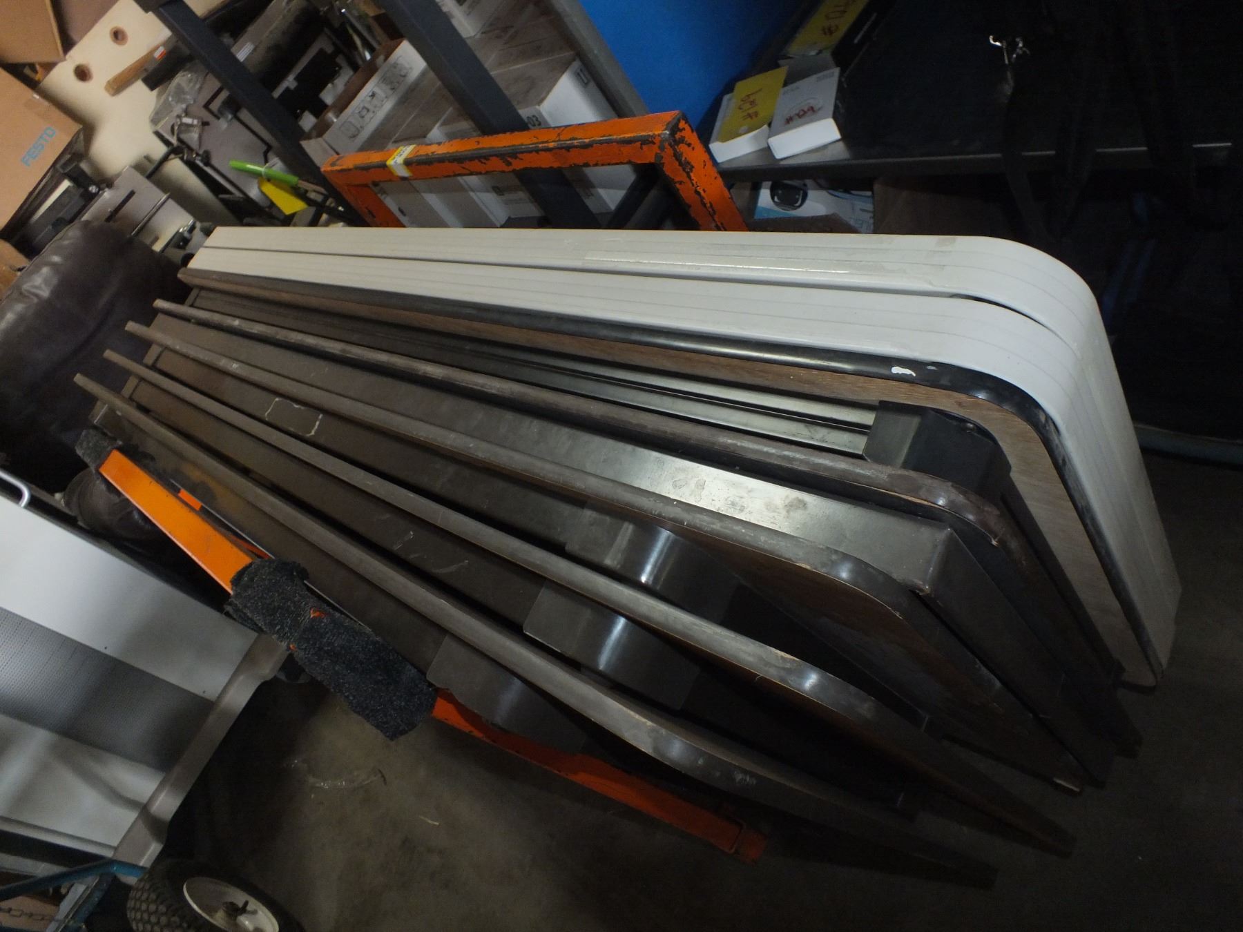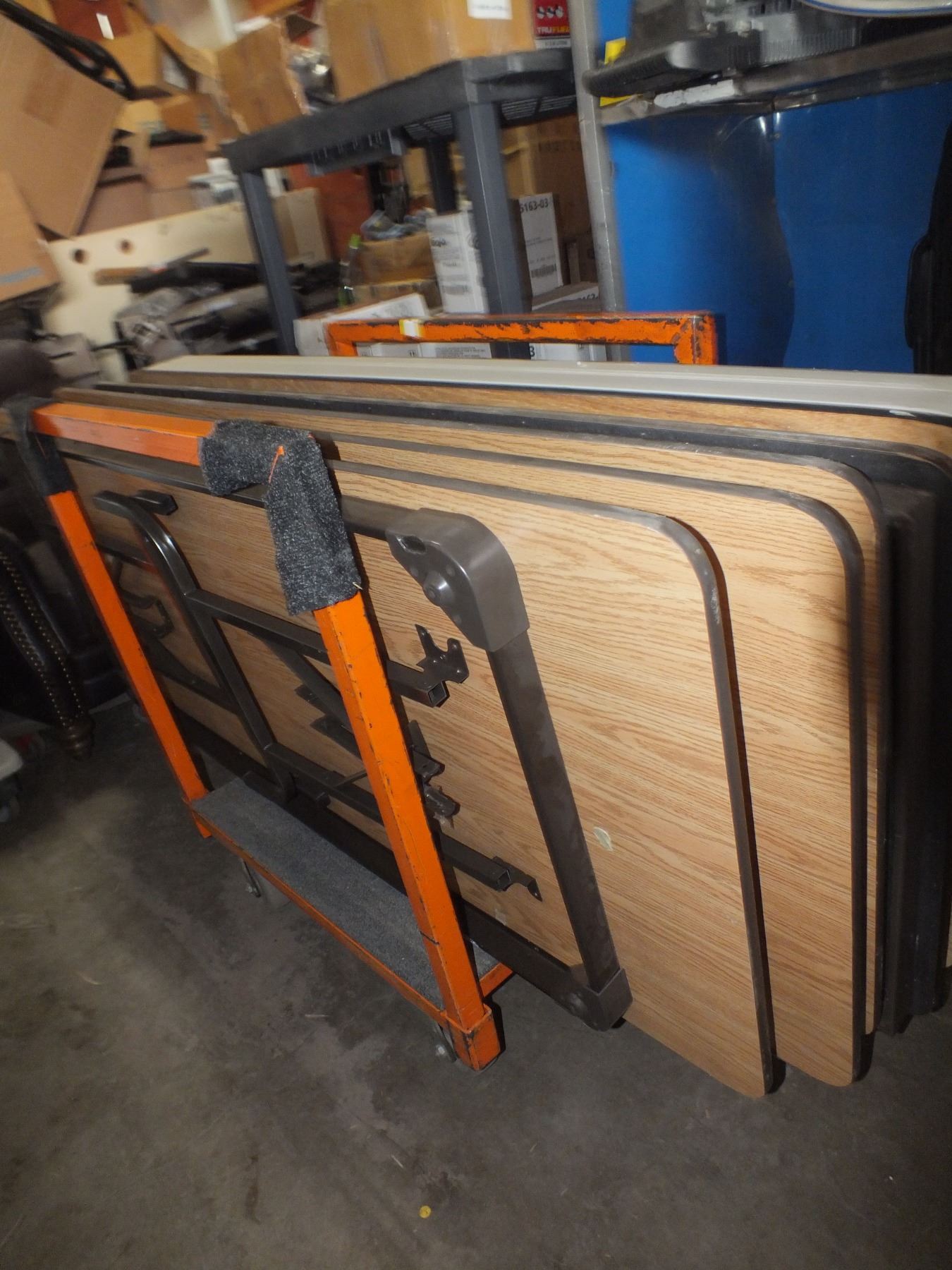 you get them all for one money, 5 wood and 2 plastic 6ft tables, orange cart not included...used